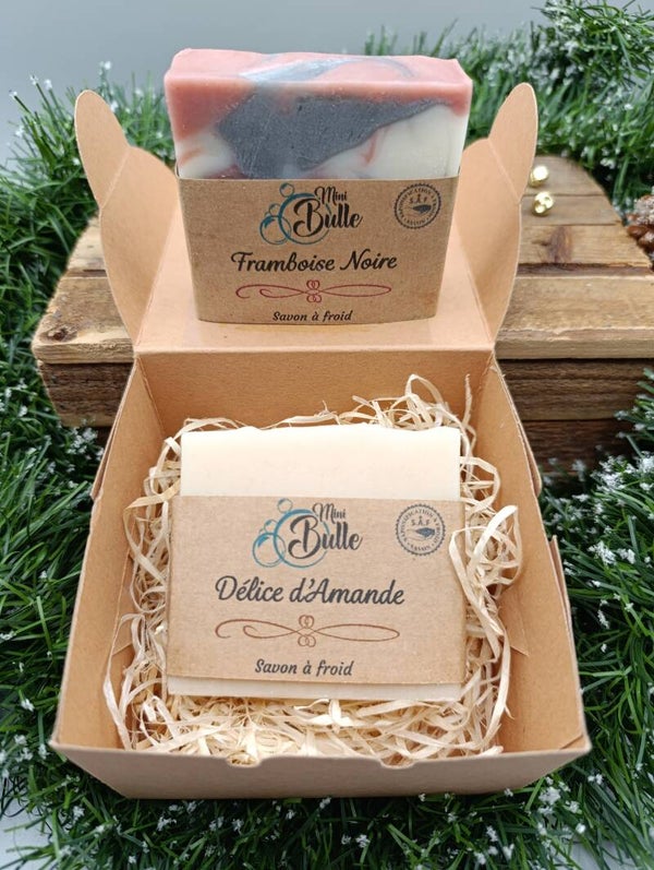 Ce coffret élégant renferme deux savons saponifiés à froid, entièrement au choix, parmi nos créations artisanales. Une belle manière de composer un cadeau personnalisé, naturel et poétique.
